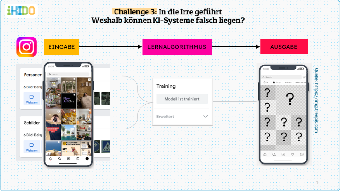 Jugendliche werden entdecken, wie kleine Änderungen einen großen Einfluss auf die Ergebnisse eines KI-Systems haben können. Sie werden begreifen, wie wichtig es ist, beim Training und Testen eines KI-Systems präzise zu sein.