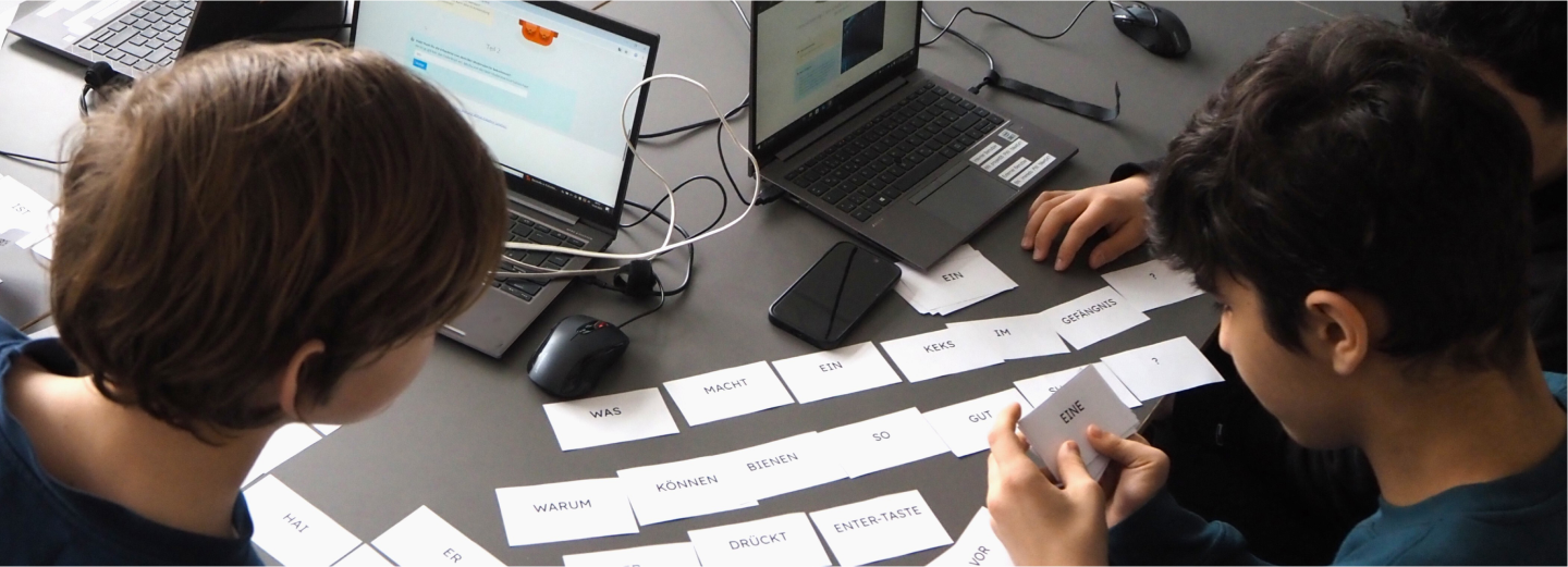 Anhand konkreter Anwendungen – etwa dem Umgang mit sozialen Medien – reflektieren die Teilnehmenden, wie KI bei sensiblen Themen wie Privatsphäre oder Cybermobbing unterstützen kann. Sie trainieren ein eigenes Sprachmodell mit Texten, testen es kritisch und lernen dabei die Grenzen der Systeme kennen – etwa im Umgang mit fehlendem Wissen oder Desinformation. Am Ende des Tages entwickeln sie einen eigenen Chatbot zu einem frei wählbaren Thema und erleben so, wie Sprach-KI gestaltet, hinterfragt und verantwortungsvoll genutzt werden kann.